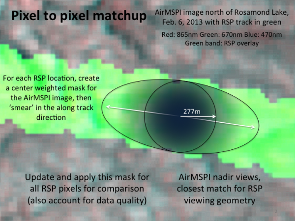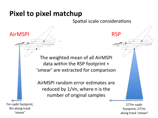 More details can be found here. However, this should not be considered the final assessment of the data. The AirMSPI geolocation for the data assessed here were performed by hand. This comparison will be repeated once automated geolocation is applied to AirMSPI data and the data are made available publically.
