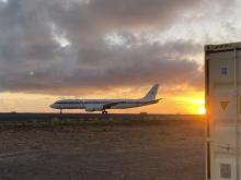 DC-8 taxiing after arrival on Sal