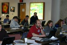 Daniel Jacob ARCTAS Lead Scientist presiding over the Met briefing in the Globe room at UAF