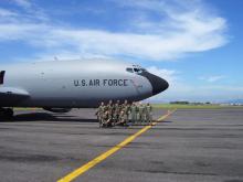 Boarding the DC-8 Rick Shetter, President Arias, Ambassador Langdale, Rodrigo Arias