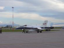 F-18 arrives at Cold Lake to bring the DC-8 a window.
