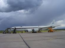 DC-8 on the ramp at Cold Lake waiting for its new window.