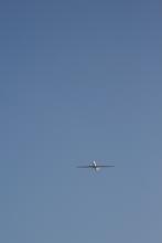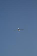 AV-6 contrail after morning takeoff from WFF, T-34 chase in foreground (9.26.12)