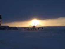DC-8 Spring 2010 Thule Greenland- morning roll-out into the sun
