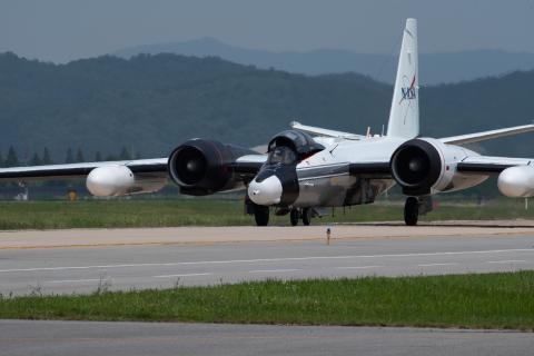 NASA WB-57 arrives at Osan Air Base on 7/27/2022. The WB-57 is one of two aircraft part of the ACCLIP campaign.