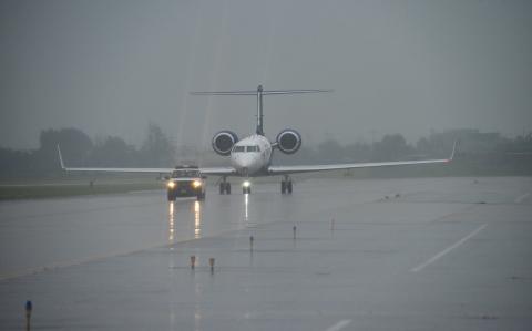 The NSF/NCAR G-V (N677F) arrives at Osan AB as part of the ACCLIP campaign.