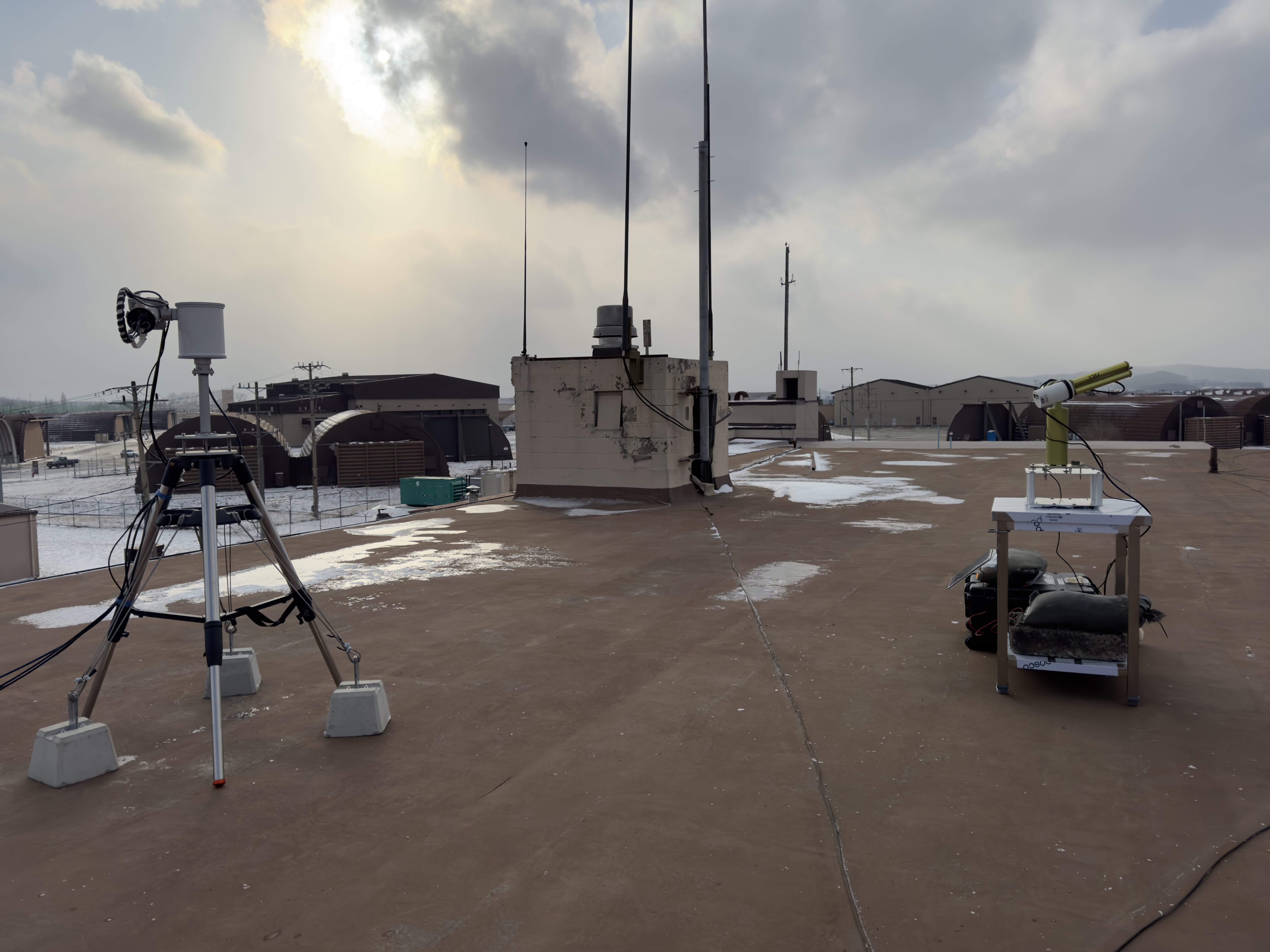 AERONET and PANDORA teams from Pukyong National University and National Institute of Environmental Research - ROK setting up their instruments on top of Building 1185 in Osan AB during a cozy 17F day
