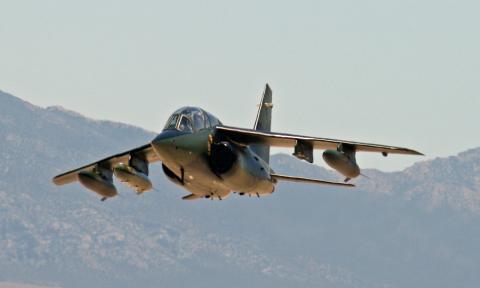 Alpha Jet in Flight showing the instrument pod on the starboard wing. Credits Warren Gore Subject Aircraft Mission AJAX