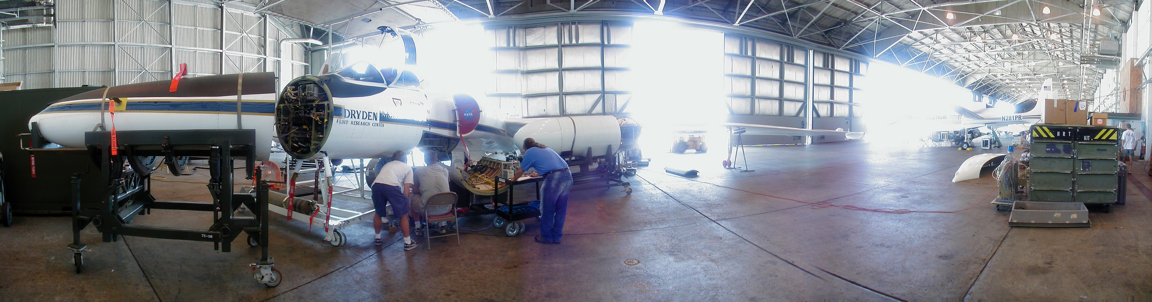 Science team members investigate instrument integration on the ER-2 aircraft during the CRYSTAL FACE mission.