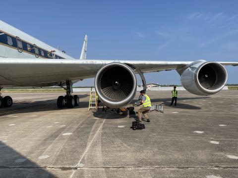 Picture of the day: DC8 crew closing Engine #2 after a successful repair