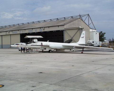 ER-2 aircraft outside of the hangar during the CRYSTAL FACE mission. Subject Aircraft Aircraft ER-2 - AFRC Mission CRYSTAL FACE