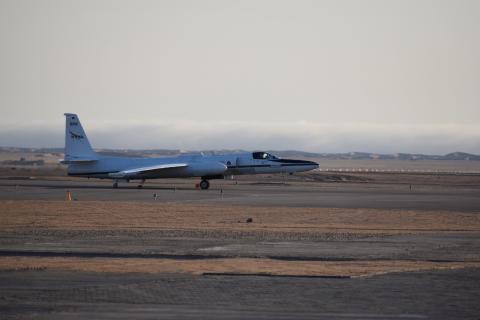 ER-2 taxiing with the Namibian marine layer along the coast in the background.