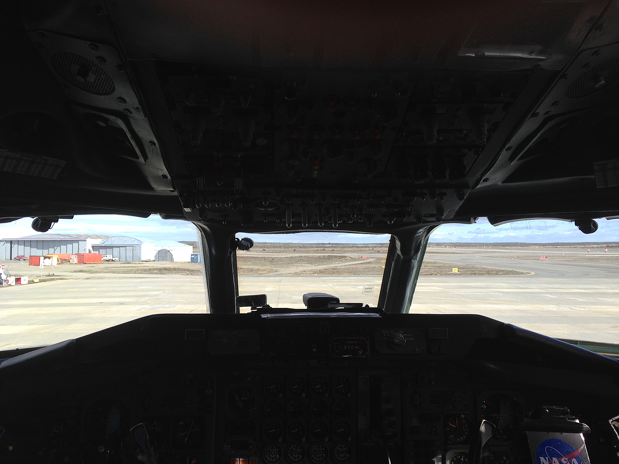 View out of the DC-8 cockpit.