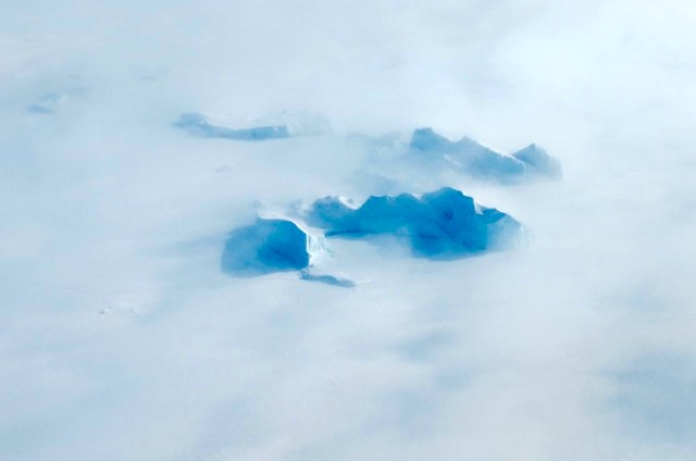 Icebergs in the fog. (Greenland)