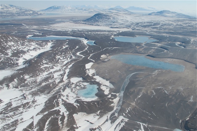 Melt water pond along Greenland's NE coast. (Greenland)