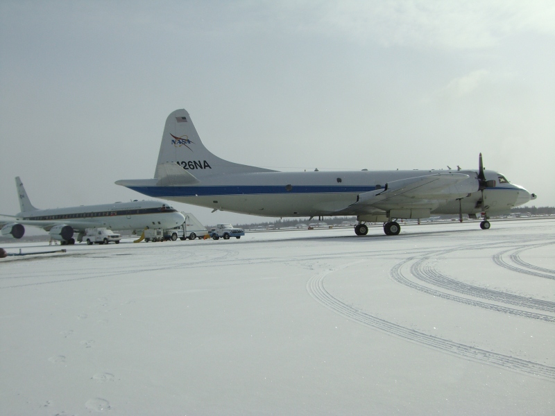P-3 foreground - DC-8 background fresh Fairbanks snow
