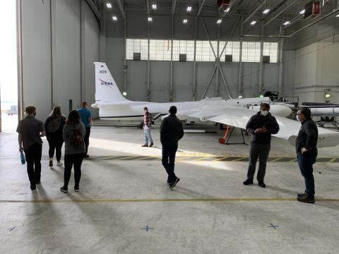 Chip Helms leads a group tour for local students around the ER-2 at Pope AAF on 2/12/2022.