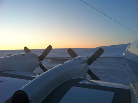 Sunrise over the ice cap. (Thule AB, Greenland)