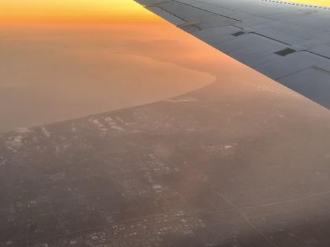 Sunset view behind the wing of the DC-8 on Science Flight #1.