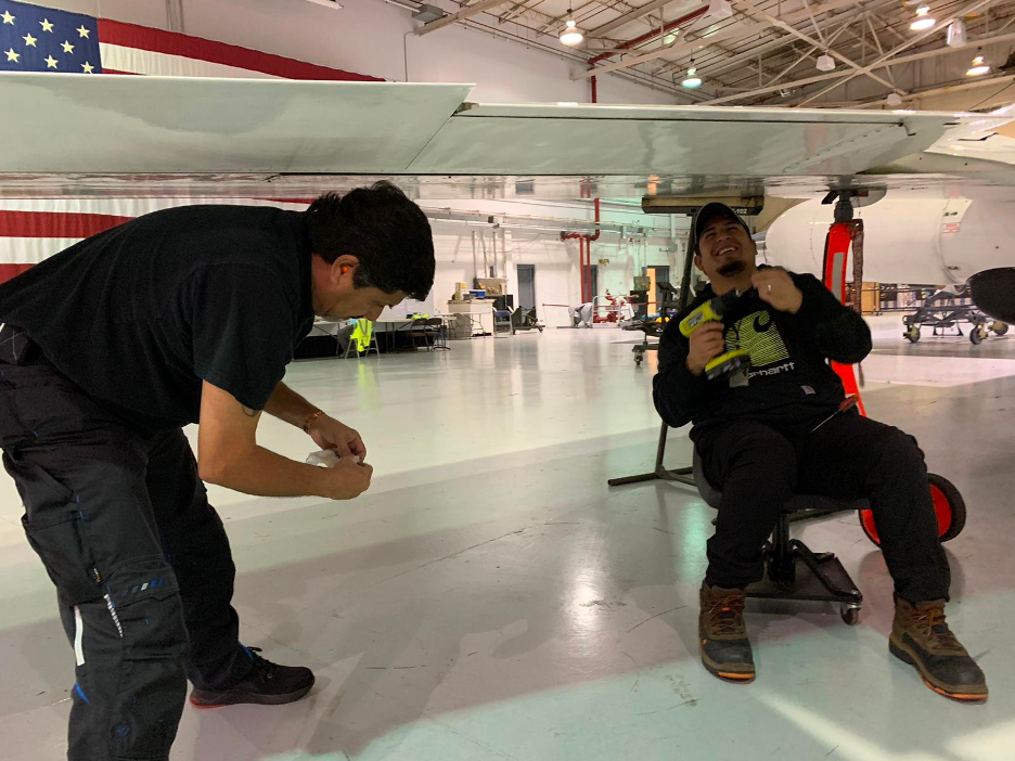 Francisco Rodriguez and Juan Alvarez ensure the ER-2 is ready for flight