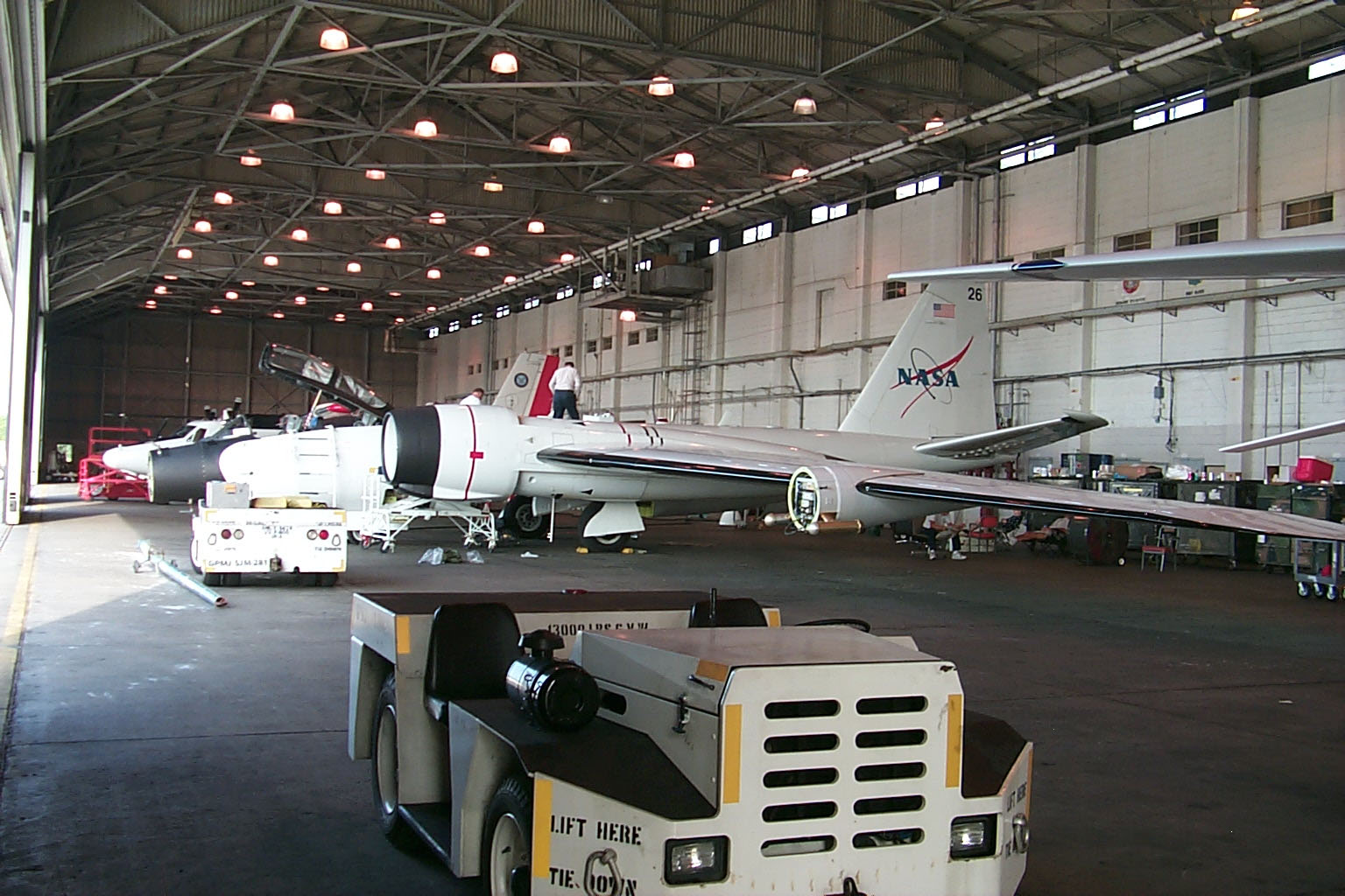 WB-57 Aircraft inside hangar during the CRYSTAL FACE mission. Subject Aircraft Aircraft WB-57 - JSC Mission CRYSTAL FACE