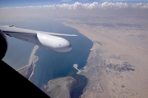 View of Walvis Bay, Namibia from ER-2 near the end of its first ORACLES mission.