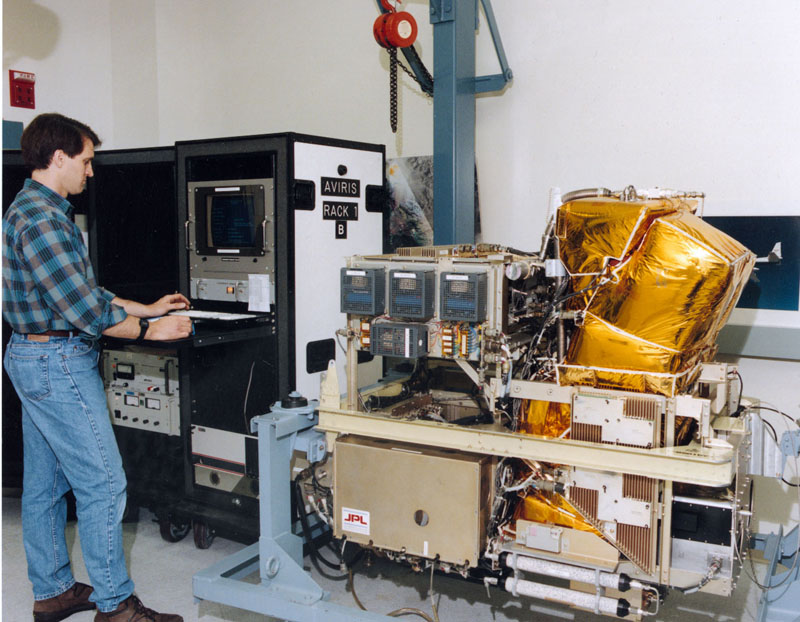 AVIRIS is the second in a series of imaging spectrometer instruments developed at the Jet Propulsion Laboratory (JPL) for earth remote sensing. It is a unique optical sensor that delivers calibrated images of the upwelling spectral radiance in 224 contiguous spectral channels (bands) with wavelengths from 380 to 2510 nanometers. It uses scanning optics and four spectrometers to image a 677 pixel swath simultaneously in all 224 bands. AVIRIS has flown in North America, Europe, and portions of South America.